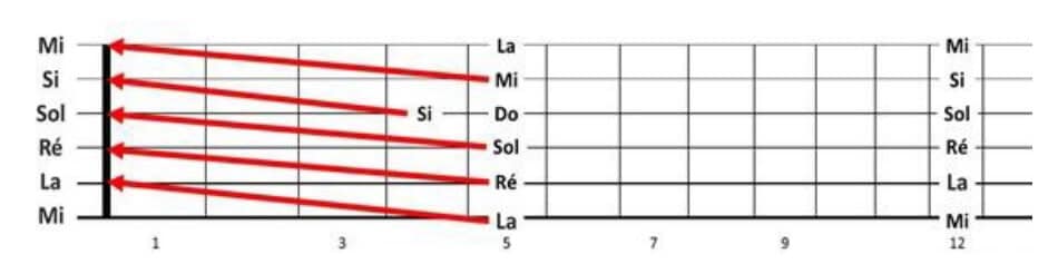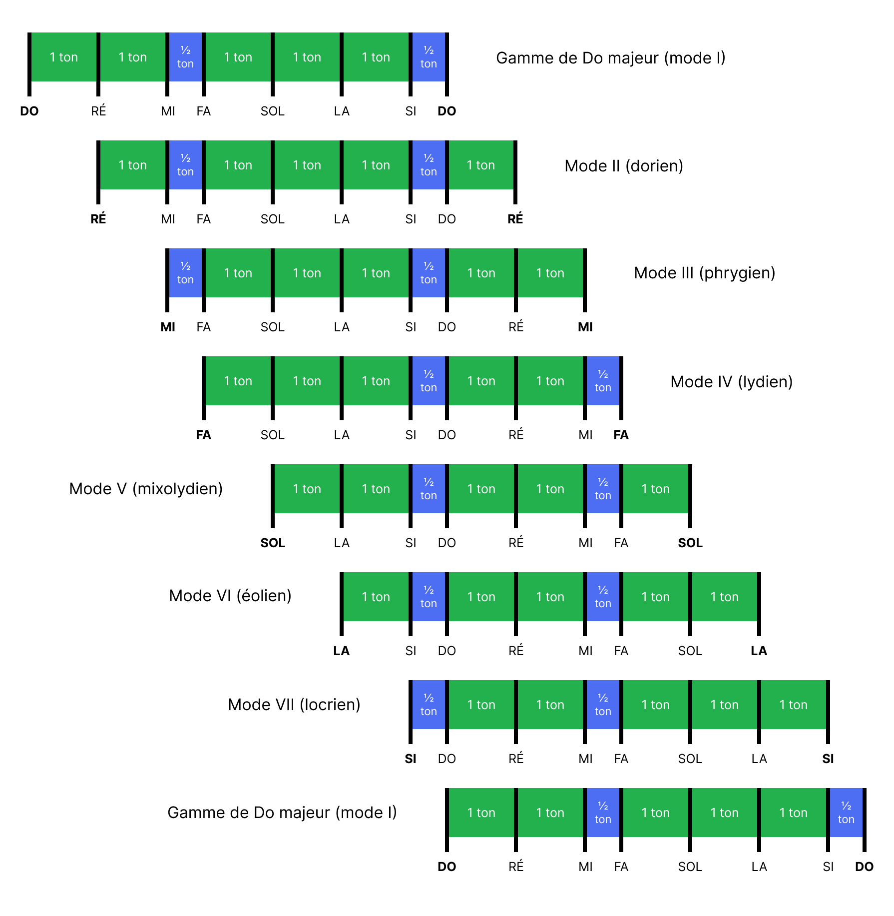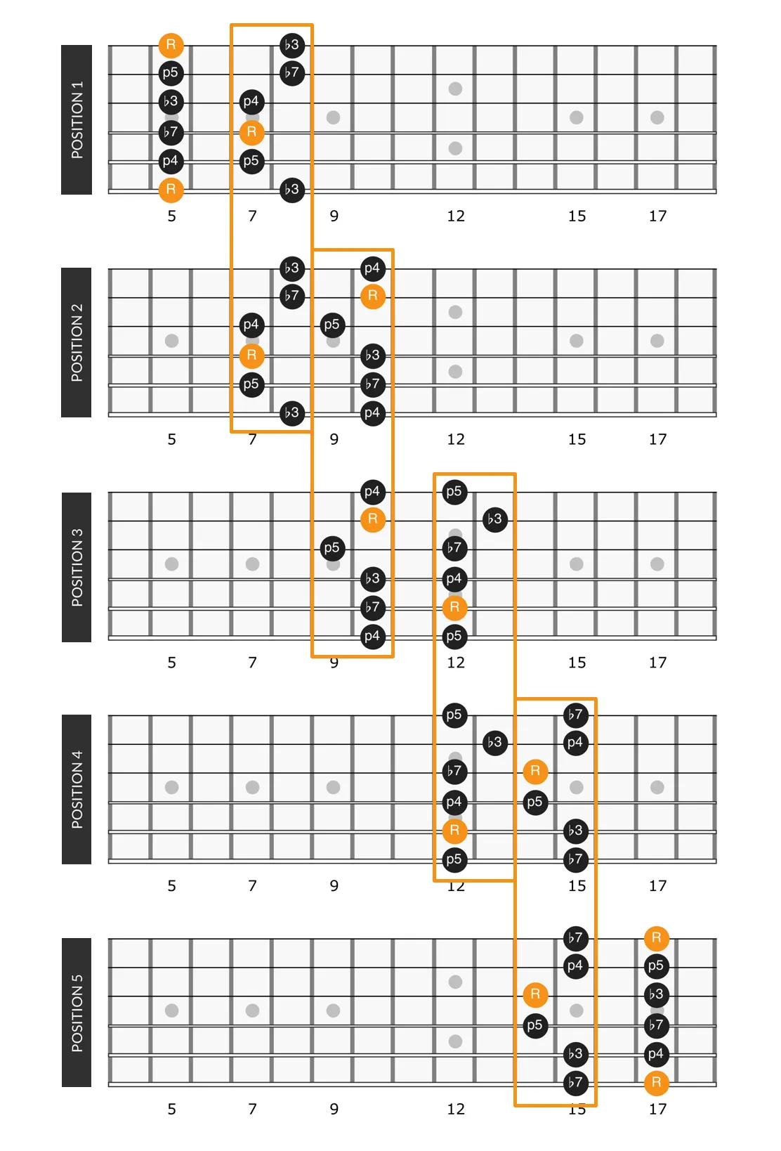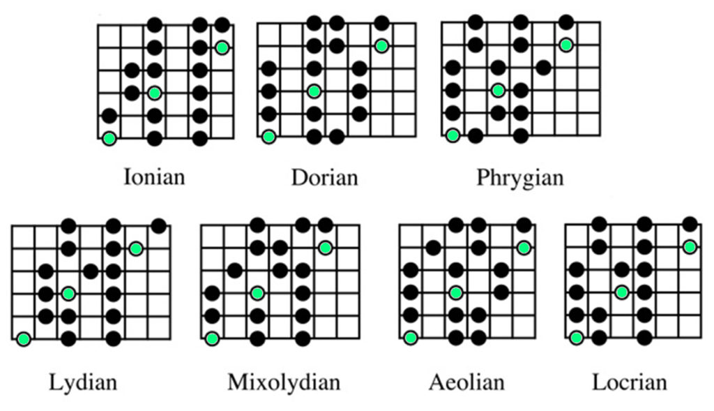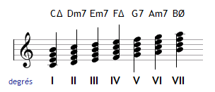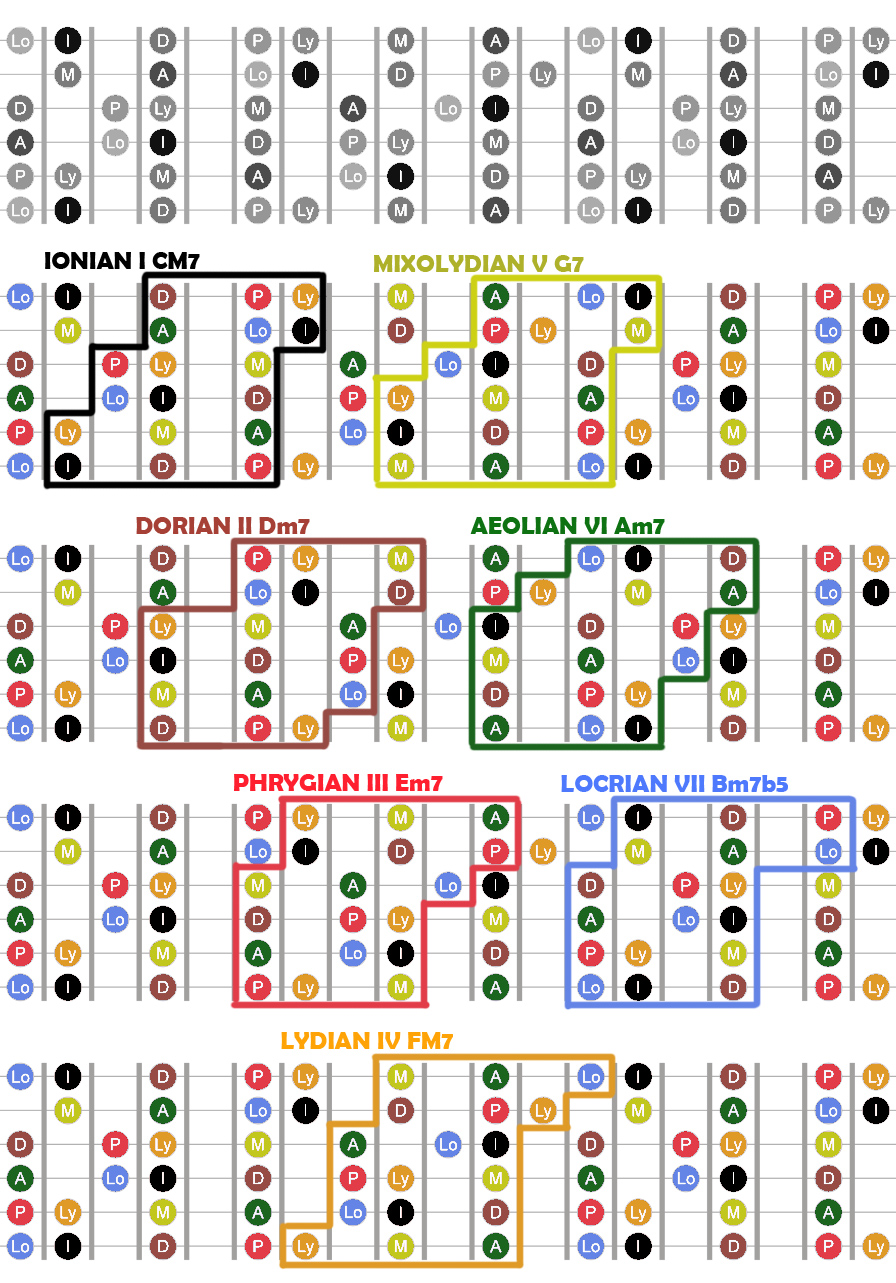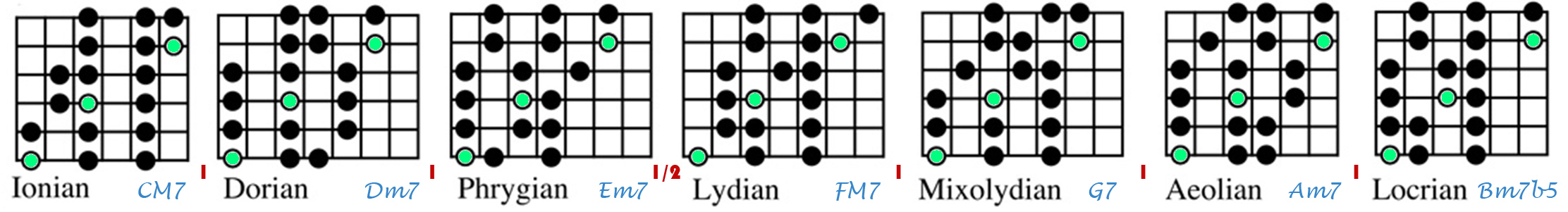 I M7 – II m7 – III m7 – IV M7 – V 7 – VI m7 – VII m7b5